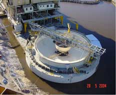 A floating 25m diameter clarifier, commissioned on a mineral sands gravity plant, to eliminate slimes layers from the operating pond floor.
